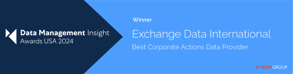 New York, NY, USA. September 26th, 2024 – Exchange Data International (EDI), a leading provider of global financial data services, is proud to announce that it has been named Best Corporate Actions Data Provider at the prestigious 2024 A-Team Data Management Insights USA Award.