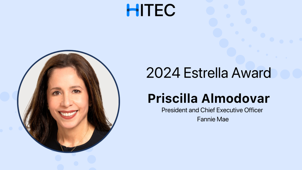 CHICAGO, October 23, 2024 – The Hispanic Technology Executive Council (HITEC) is pleased to announce that Priscilla Almodovar, President and Chief Executive Officer of Fannie Mae, has been selected as the recipient of the 2024 HITEC Estrella Award.