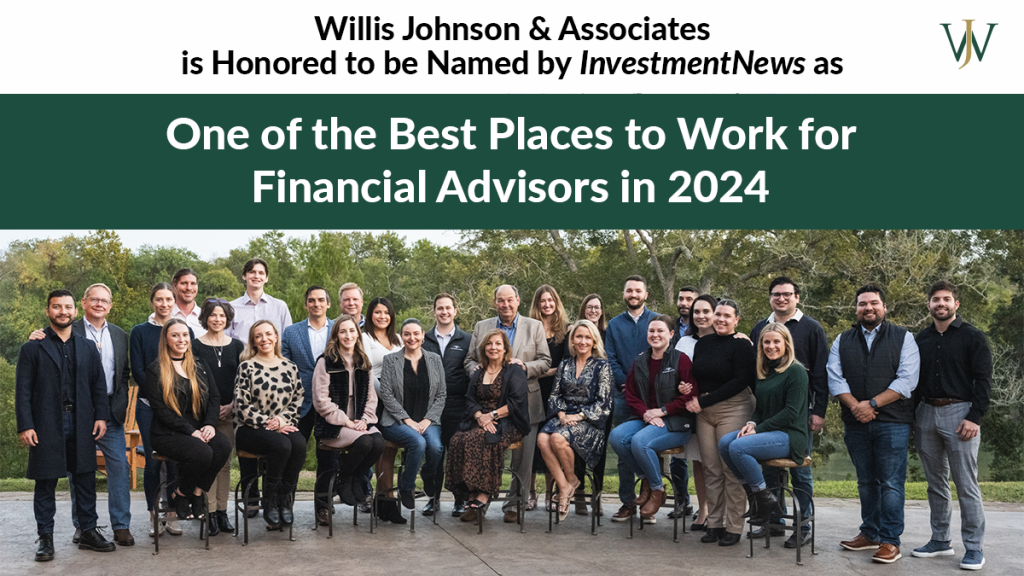 HOUSTON, US. March 1st, 2024 – InvestmentNews’ released their Best Places to Work for Financial Advisors ranking this morning. For the fifth year in a row, Willis Johnson & Associates made the list for companies with 15-29 employees, ranked #16.