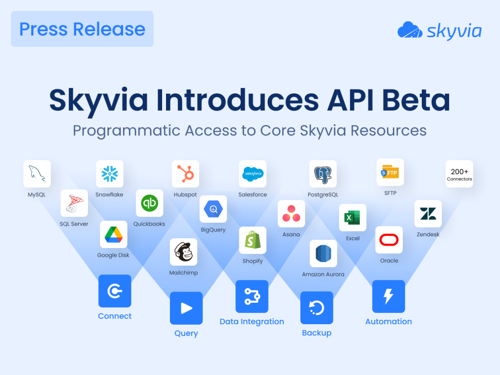 Prague, Czech Republic. April 16th 2025 – Skyvia, the most comprehensive data integration platform, has announced the beta release of its highly anticipated Public API. The new feature responds directly to customer requests for enhanced flexibility, programmatic control, and streamlined automation in managing their data workflows. Designed for IT professionals and business users, the Skyvia Public API beta is now available for testing, offering a robust solution to integrate, manage, and optimize data across 200+ supported cloud applications, databases, and services.