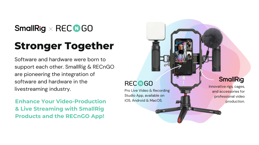This pioneering initiative merges SmallRig’s expertise in creating robust and versatile camera rigs with RECnGO’s cutting-edge live video production technology. Together, they are now offering a comprehensive system that not only simplifies the smartphone-based video production process but also enhances its efficiency, quality, and accessibility.